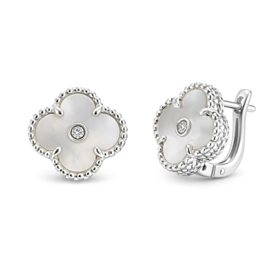 Серебряное кольцо Клевер Черный с ониксом и фианитами