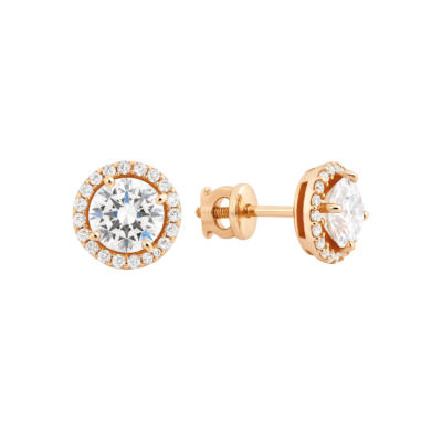 Золотые серьги-пусеты с фианитами Бутон