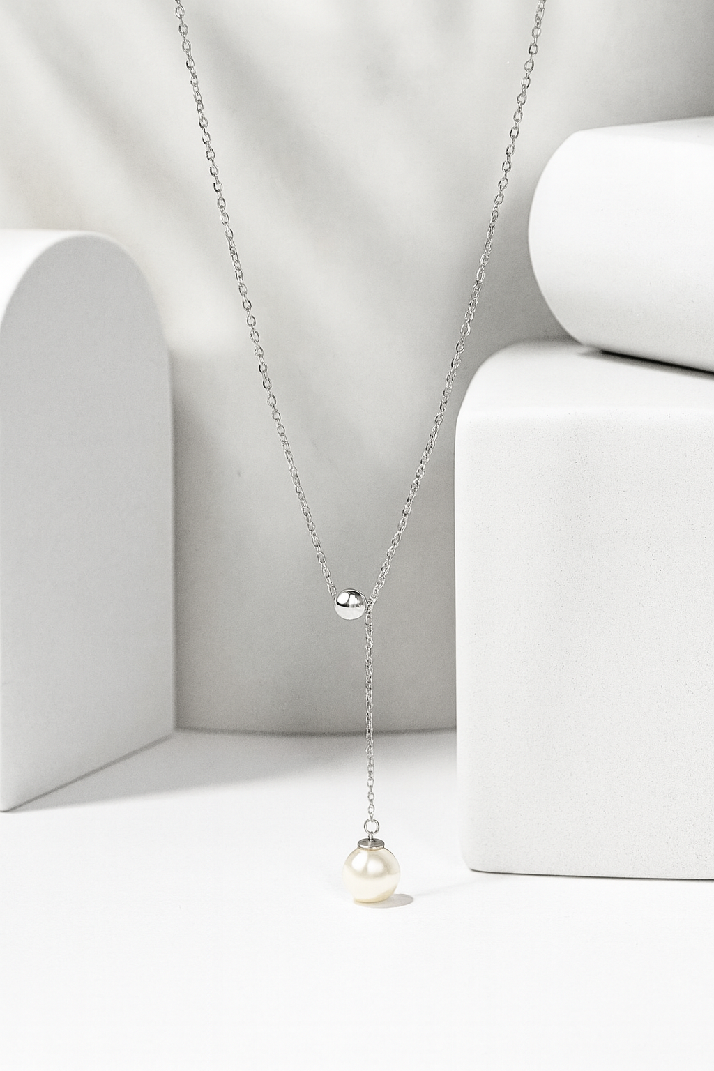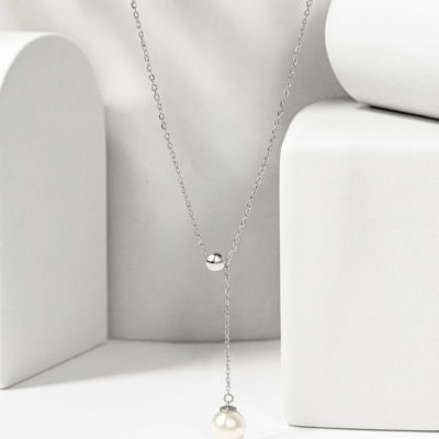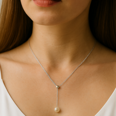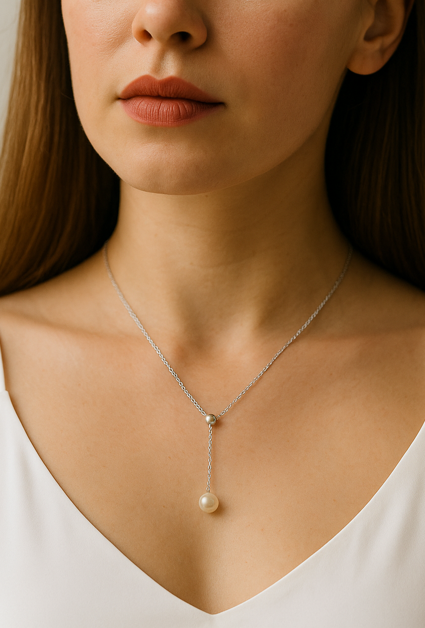 Колье-галстук серебряное с жемчугом «Жемчужное прикосновение»