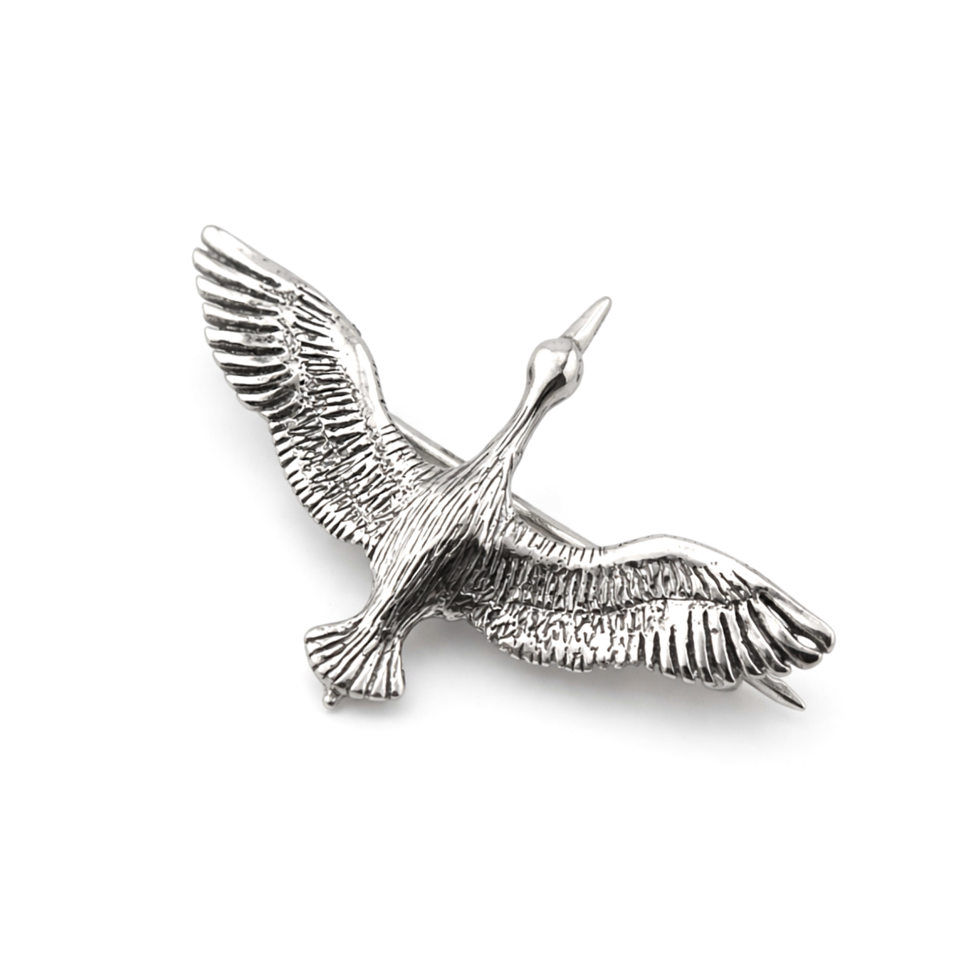 Тонкая проработка деталей подчёркивает красоту силуэта птицы в полёте, а благородный блеск серебра придаёт броши элегантность и выразительность. Украшение гармонично дополняет как повседневные, так и более торжественные образы, эффектно смотрится на пальто, жакете, платье или шарфе.