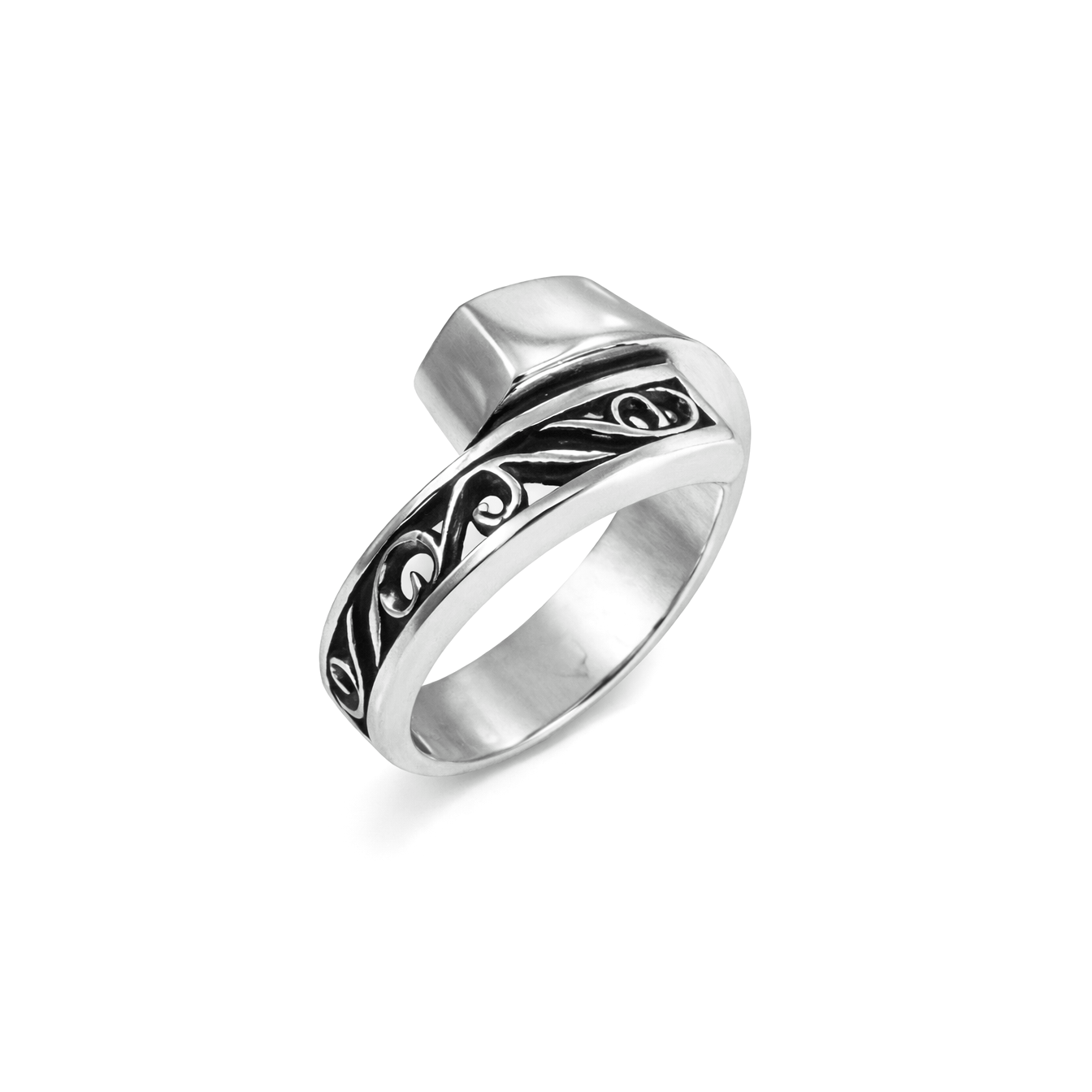 Серебряное кольцо Эрика — лаконичное украшение с характером. Гладкая форма дополняется контрастным орнаментом, который придаёт изделию глубину и стиль. Подойдёт для тех, кто ценит сдержанную элегантность с интересной деталью, идеально смотрится в повседневных образах и легко сочетается с другими украшениями.