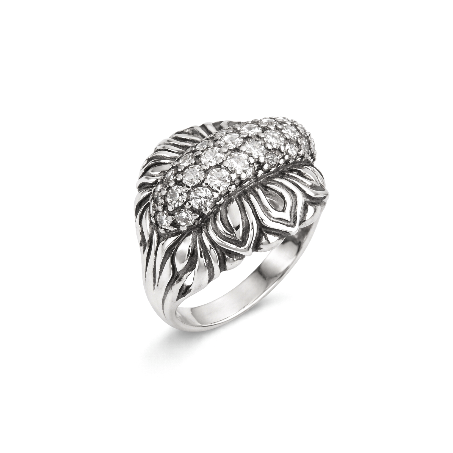 Серебряное кольцо Инесса — эффектное украшение с россыпью сверкающих фианитов и ажурным орнаментом, создающим ощущение объёма и утончённой роскоши. Дизайн выглядит выразительно и в то же время женственно, притягивая внимание к рукам. Подойдёт для женщин, которые любят яркие, заметные украшения с элегантным характером. Идеально для праздников, вечерних выходов, свиданий и торжественных событий, а также станет стильным акцентом в повседневных образах.