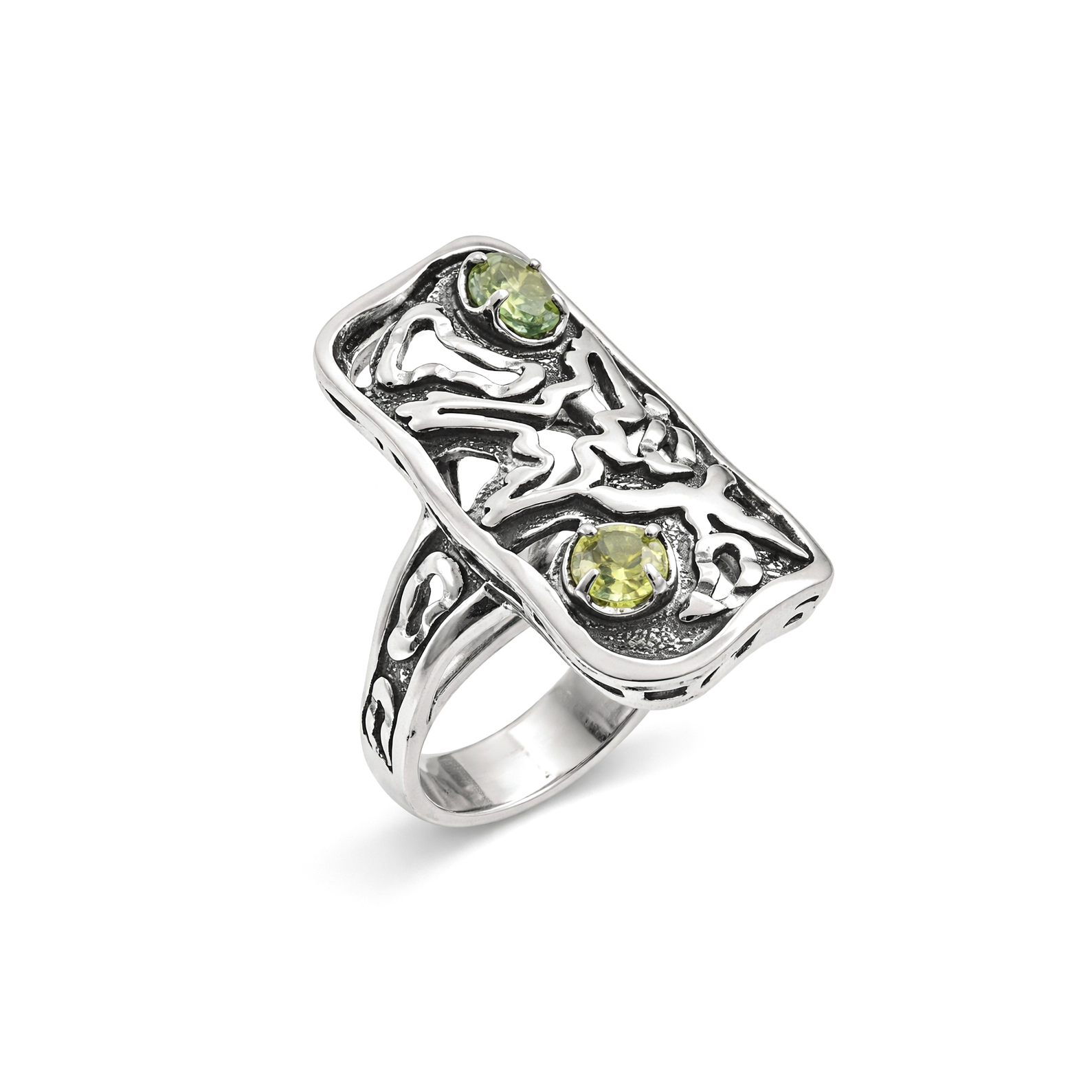 Серебряное кольцо Птица — эффектное украшение с выразительным ажурным узором и вставками зелёных камней, которые придают изделию глубину и яркий акцент. Дизайн с плавными линиями и силуэтом птицы символизирует свободу, вдохновение и лёгкость. Подойдёт для тех, кто ценит оригинальные украшения с характером. Идеально для создания стильных образов и станет запоминающимся подарком с особым смыслом.