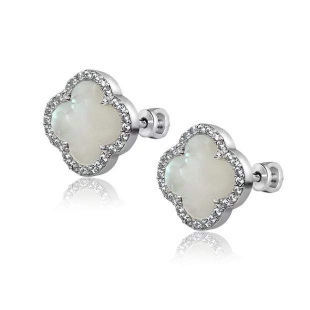 Серьги с перламутром «Четырехлистник»
