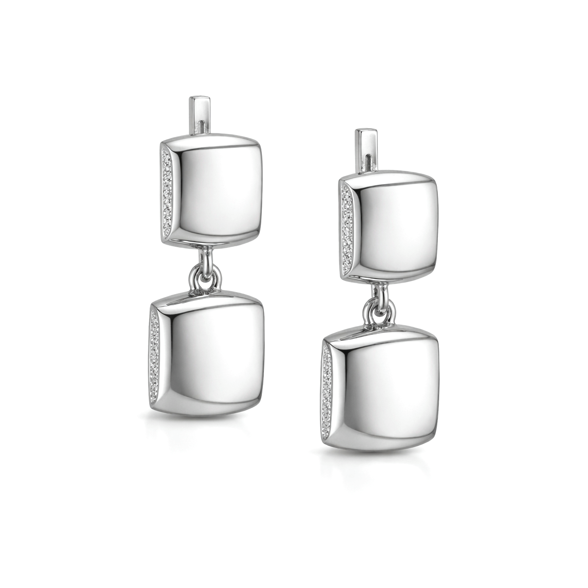 Срібні сережки Баланс – це втілення сучасної геометрії та гармонії форм. Гладка дзеркальна поверхня срібла підкреслює мінімалізм моделі, а бічні вставки з мерехтливими фіанітами додають делікатний блиск та відчуття преміальності. Сережки красиво відбивають світло під час руху, залишаючись при цьому стриманими та елегантними.