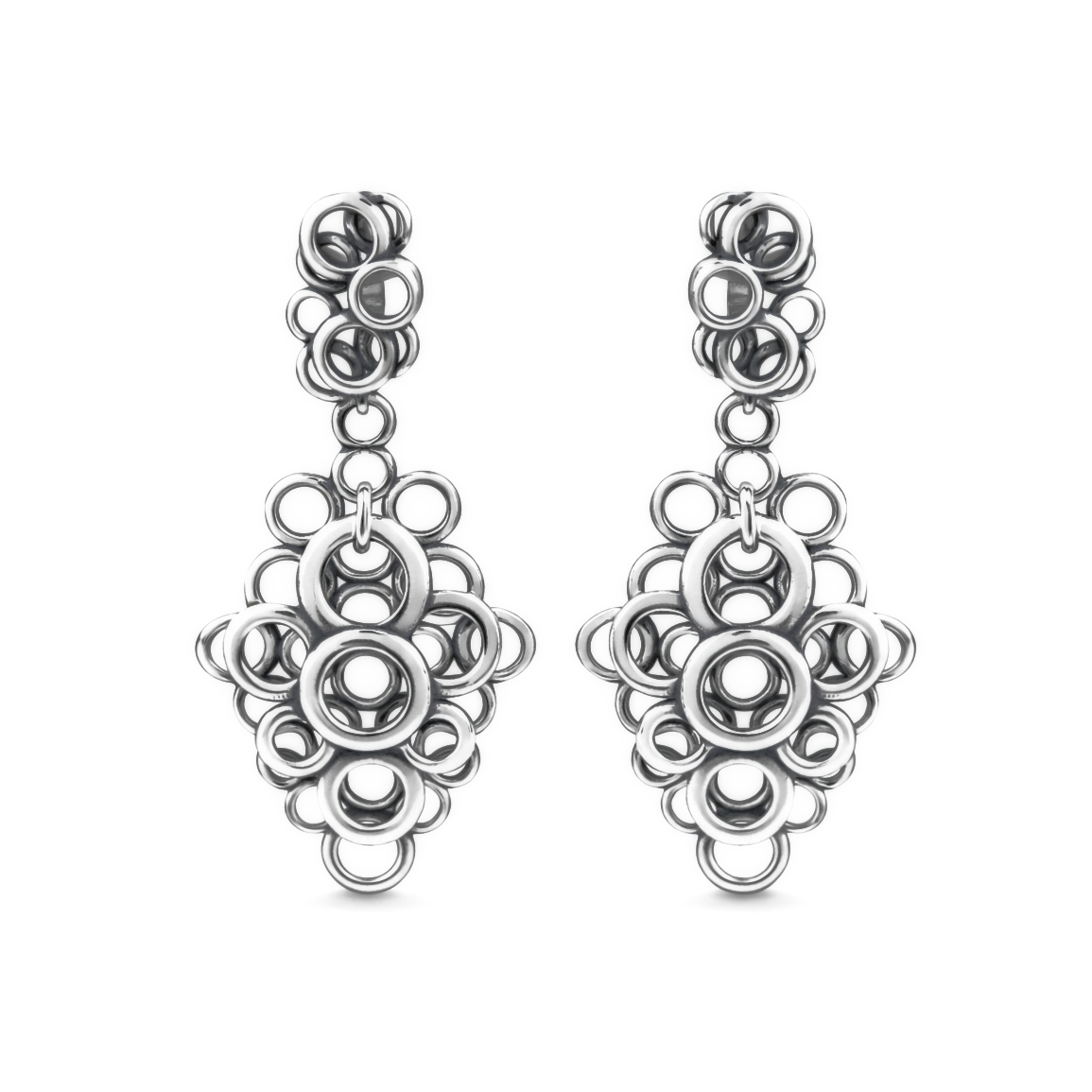 Срібні сережки Мускат — стильна прикраса з оригінальним дизайном із переплетених кілець, що створює динамічний та сучасний акцент в образі. Підвісна форма надає легкість та рух, а виразна фактура робить сережки помітними та ефектними. Підійдуть дівчатам та жінкам, які люблять нестандартні та трендові прикраси, і стануть відмінним вибором як для повсякденного носіння, так і для особливих випадків – зустрічей, свят чи вечірніх виходів.