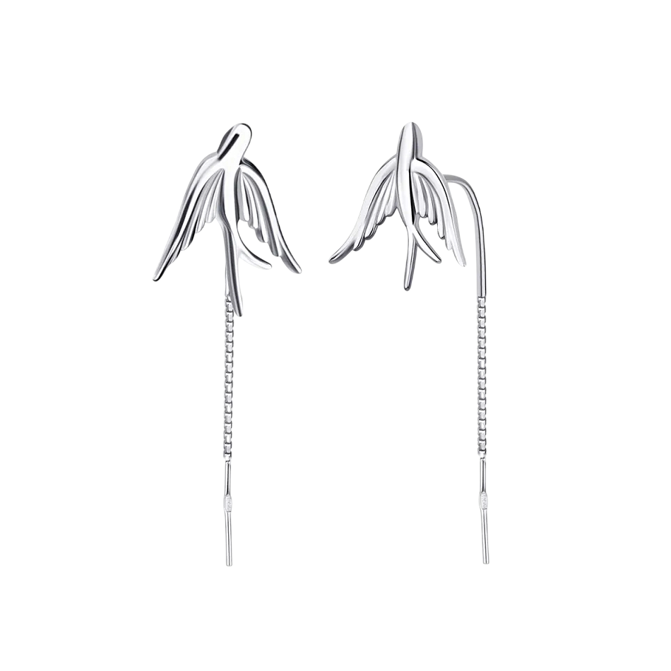 Срібні сережки-протяжки Ластівка — ніжна та символічна прикраса з витонченими силуетами птахів, які надають образу легкості та відчуття свободи. Довгі лінії красиво підкреслюють шию та створюють ефект легкості. Ідеально підходять для дівчат та жінок, які цінують витончені прикраси із змістом. Сережки гармонійно доповнять повсякденні образи — для роботи, зустрічей та прогулянок, а також стануть романтичним акцентом для вечірніх виходів, додаючи образу легкість, жіночність та натхнення.